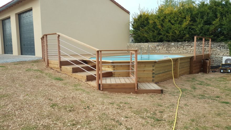 Si vous décidez de l’incorporer dans votre terrasse, vous aurez alors une piscine semi enterrée en bois qui fera partie intégrante de votre espace détente. La piscine en bois semi enterrée est très à la mode et on le comprend : imaginez l’apéritif sous les parasols pendant que les enfants s’en donnent à cœur joie dans la piscine, et les longues après-midis de vacances sur un transat à bronzer après un petit plongeon.